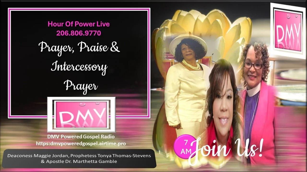 Hour Of Power Live Prayer, Praise in the Word, & Intercessory Prayer @ 5 am Est. with Deaconess Maggie Jordan, Prophet, Reverend Tonya N. Thomas-Stevens and Apostle, Dr. Marthetta Gamble.