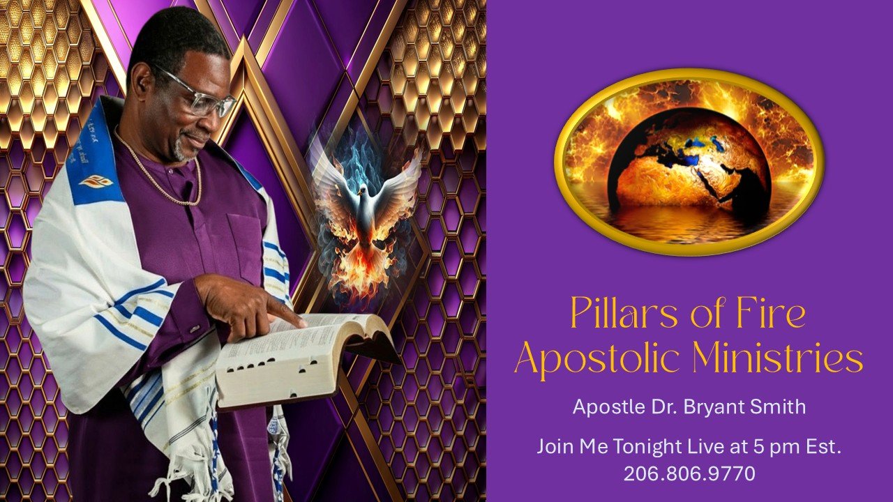 Pillars of Fire Apostolic Ministries at 5 pm Est., Monday through Saturday with; Apostle Dr. Bryant K. Smith in Hysibia, Georgia